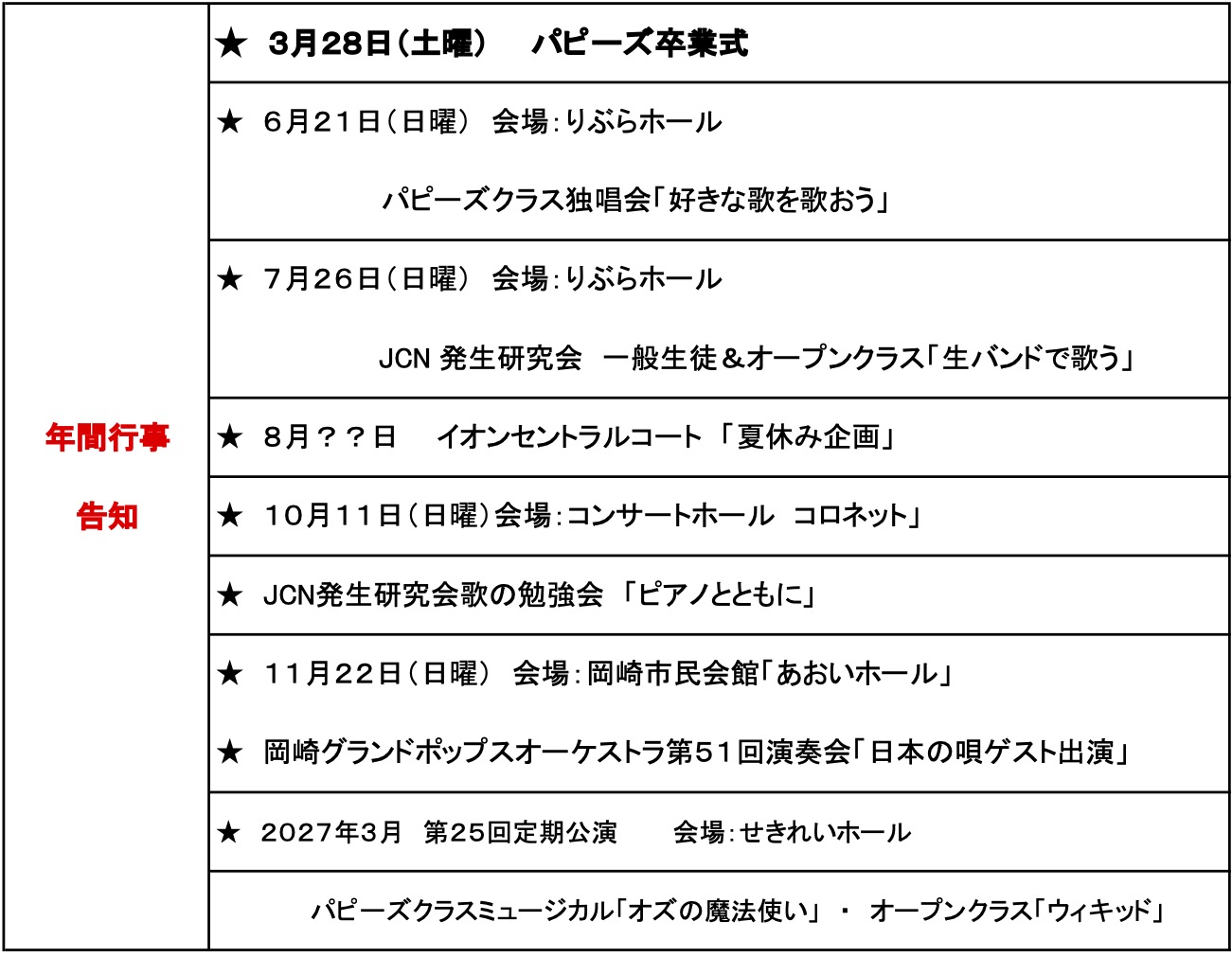 パピーズ練習予定表